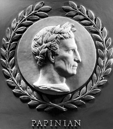 Papinianus is niet alleen auteur van enkele gezaghebbende rechtsgeleerde geschriften, hij heeft ook enkele ambtelijke topfuncties bekleed in de keizerlijke administratie. Toen in 212 Geta door soldaten van Caracalla werd vermoord en Papinianus de opdracht kreeg deze broedermoord goed te praten, heeft hij dit geweigerd. Ook hij werd vervolgens op last van Caracalla omgebracht. Door deze standvastige houding werd Papinianus het symbool van de jurist die ervoor stond dat geboden van morele en ethische aard niet te scheiden zijn van die van het recht en dat zij onder omstandigheden daar zelfs bovenuit kunnen stijgen. Bijna 2000 jaar vervult Papinianus zijn iconische rol en wordt hij al vanaf de late Oudheid tot in de Nieuwe Tijd geëerd wegens zijn martelaarschap.